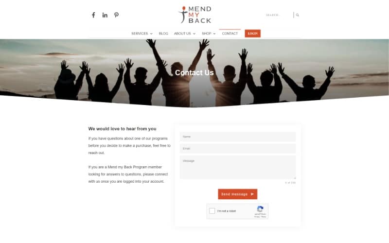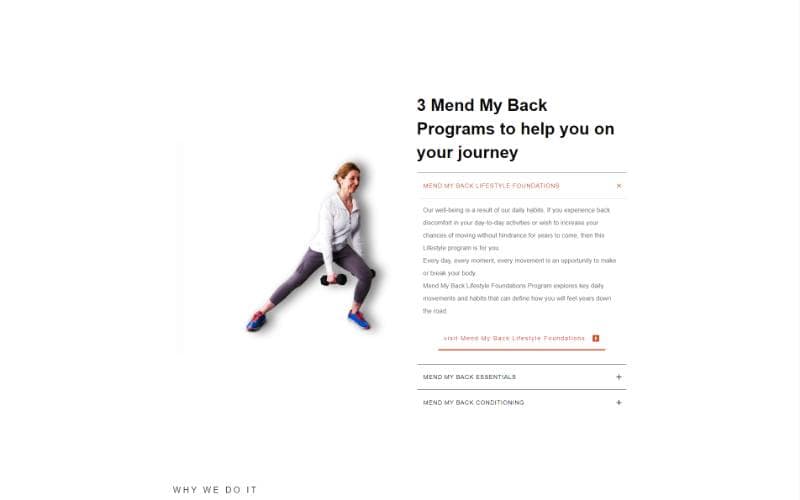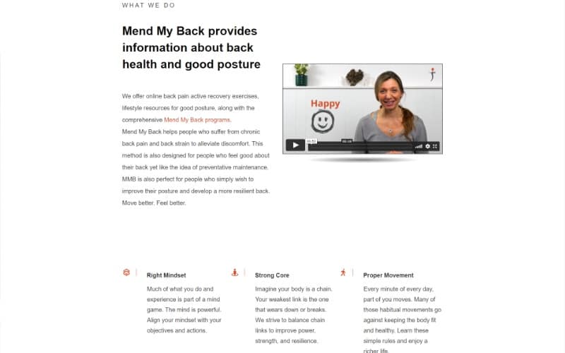 Mend My Back Program homepage top fold